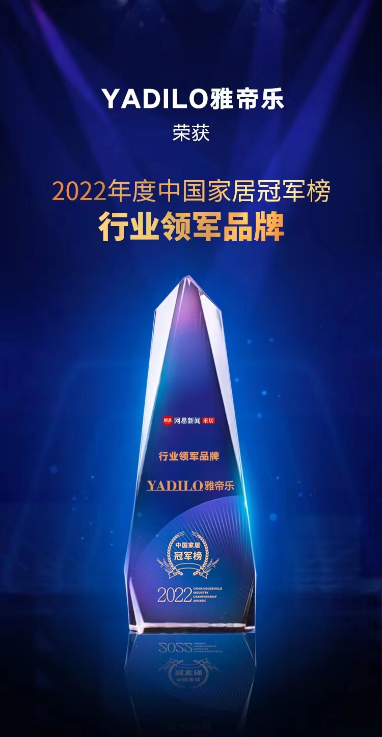 本次盛典,雅帝乐凭借冠军实力,揽获2022中国家居冠军榜【行业领军品牌】重磅奖项,再现冠军品牌实力,意义非凡。